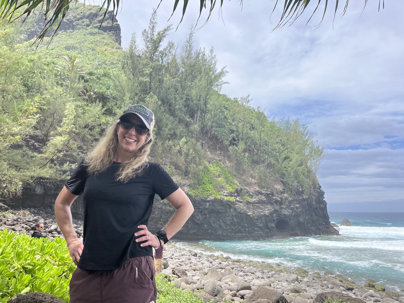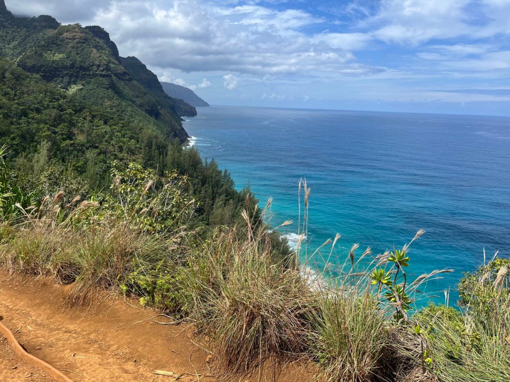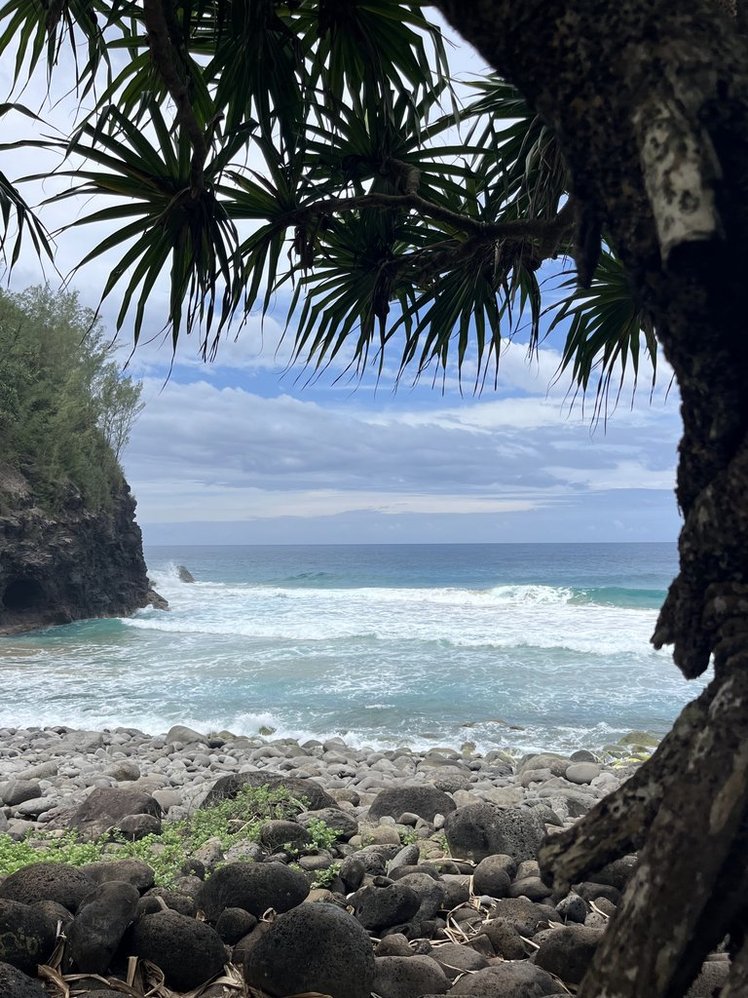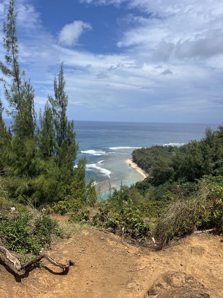 We hiked the first two miles of the Kalalau Trail—a steep climb up followed by a descent to Hanakāpī‘ai Beach. The hike is rocky, muddy, and crosses a stream, but it was absolutely doable and breathtaking. The beach was too rough for swimming, but beautiful to explore.