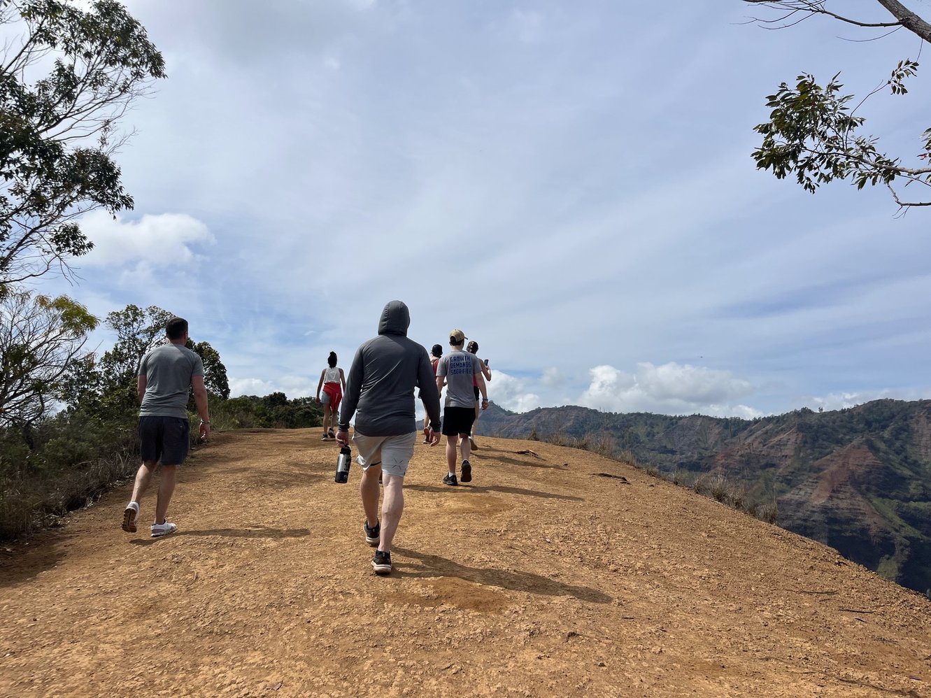 The group split up today: the guys played a round at Wailua Golf Course, while the girls hiked the Mahaʻulepu Heritage Trail. This lesser-known trail winds along rugged cliffs and turquoise coastline—stunning but very exposed. Sunscreen, hats, and water are must-haves.