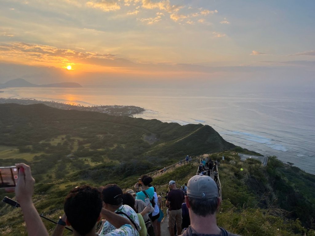 Another early start! We had a 6 AM reservation to hike Diamond Head. Ubered there, and while the crowds picked up near the summit, we were treated to an incredible sunrise view. Most people were looking at the sunrise, so we had the Waikiki views nearly to ourselves.
