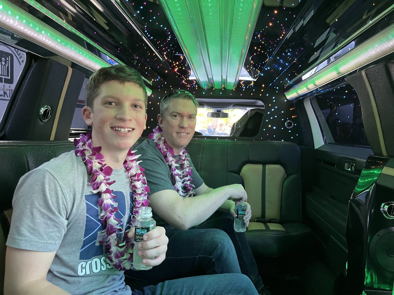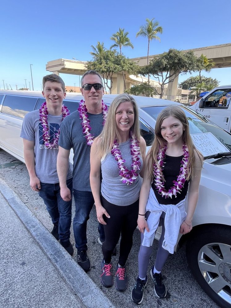We landed in Honolulu at 3:45 PM HST, and I had a surprise waiting: a pre-booked limo service to whisk us to our hotel. It was a small splurge that made a big impact—especially with the fresh leis I pre-arranged for everyone. The kids were totally surprised and loved it!